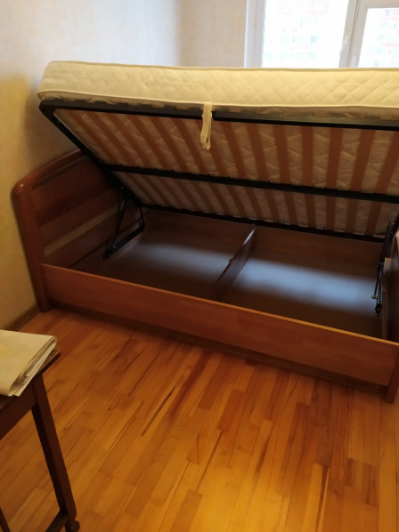 Спальный гарнитур из натурального дерева Флоренция с подъёмным механизмом , массив берёзы , цвет белая эмаль , декорирован серебряной патиной. Изделие укомплектовано матрасом с ортопедическим эффектом.