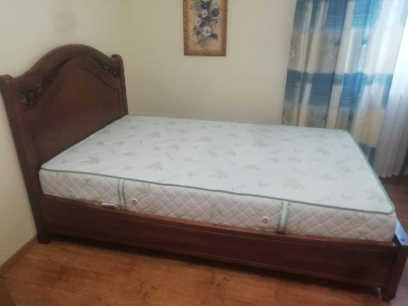 Кровать двухспальная из натурального дерева Бали люкс с подъёмным механизмом , массив сосны , цвет старый орех 2.